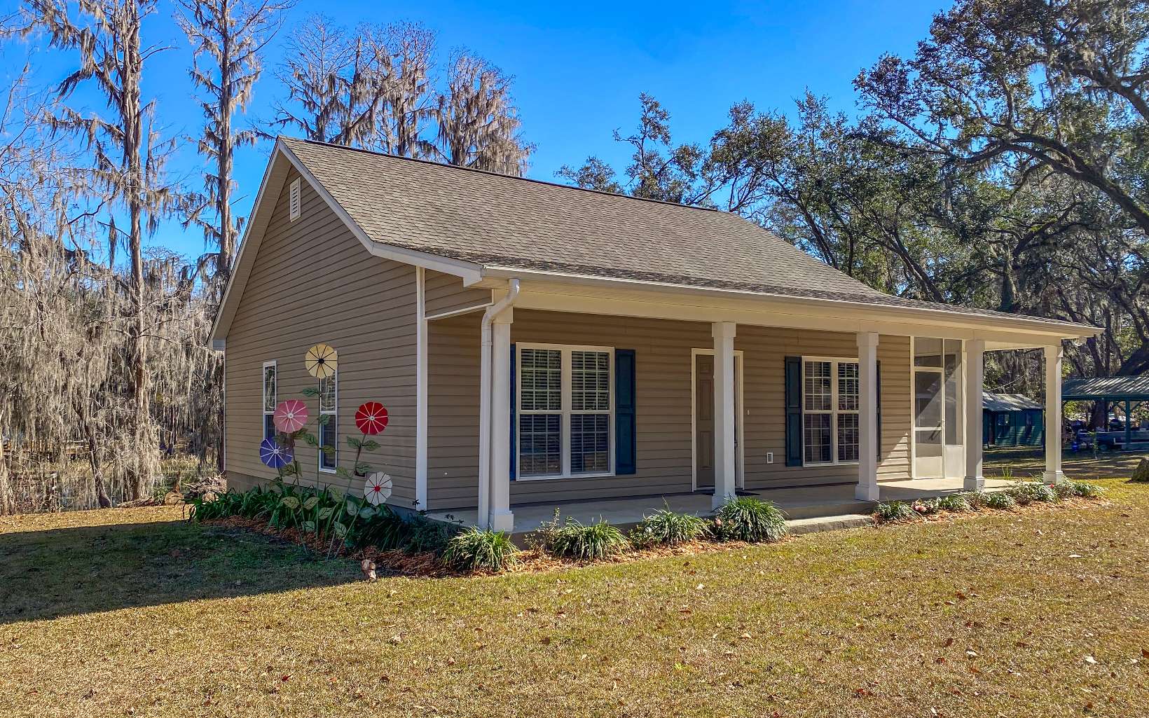 MOTIVATED SELLER!! A 25-Home land condo community on a private 400-acre LAKE OCTAHATCHEE CANAL COUNTRY COTTAGE CHARM, practically NEW [2016], minimally used, MOVE IN CONDITION, and all Air-Conditioned open floor plan awaits you. Enjoy these two bedrooms [each 13X12], one and a half bath, a utility room with utility sink and wood plank flooring throughout. Its efficient 9X8 recessed lighting kitchen, with ESPRESSO HARDWOOD raised panel/crown molded top 36”-GRANITE CABINETS with toe-kicks and STAINLESS APPLIANCES includes microwave and dishwasher, has a double bowl sink viewing a sunlit framed window and a 9X13 chandeliered FAMILY DINING. Nine foot ceilings throughout the home. The inviting front entryway is via a pillared country FRONT PORCH leading into its sunlit 13X13 great room with fan. Relax on the 3/4-length SCREENED LANAI WITH FANS. Attributes include an irrigation system, a HIGH-END WATER FILTRATION SYSTEM housed in its PROTECTIVE STANDALONE OUTER BUILDING with STORAGE SHELVING AND WORKSPACE, all has LOW MAINTENANCE VINYL-CLAD SIDING, WIND IMPACT WINDOWS, 30-year ARCHITECTURAL SHINGLES, A NEW DEEP WELL AND DOCK. Note the “crafted” hardwood doors [w/knob stops], baseboards and all framed windows and doorways. This Octahatchee Fishing Club property has approximately 90' of frontage on a canal that connects to the lake! It also offers quick access to I-75 giving that country feel with amenities easily accessed! Come enjoy years of family fun, fishing and relaxation!!