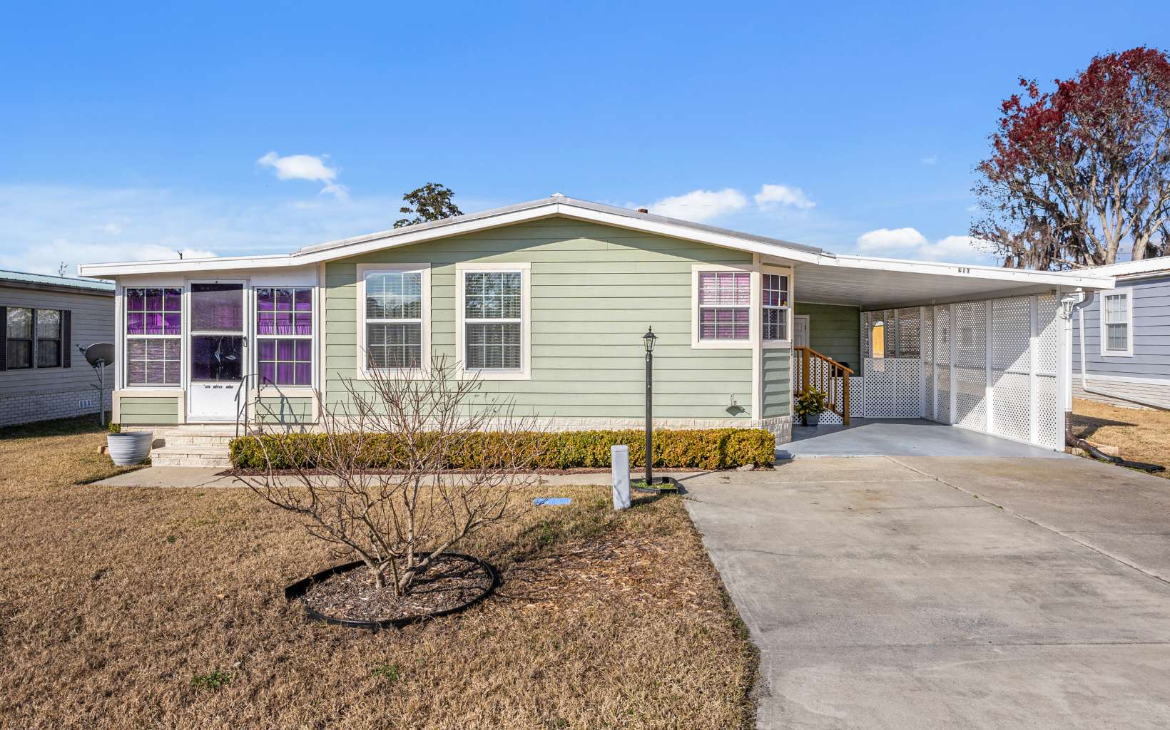 Welcome to this beautifully remodeled and immaculate home in Eastside Village, a desirable 55+ community offering fantastic amenities, including a clubhouse and community pool. Designed for comfort and ease, this inviting home features an open floor plan with a spacious kitchen, dining area, and a cozy family room that leads to a bright and airy sunroom—perfect for relaxing or entertaining. The home has been updated with Hardie board siding, fresh paint, tile and laminate flooring, and a durable metal roof. Major systems, including HVAC, plumbing, and the hot water heater, have also been updated. Additional highlights include a spacious utility room for extra storage and a covered carport for convenient parking. Enjoy low maintenance living in a friendly community close to shopping, dining, and local conveniences. Move-in ready and waiting for you!