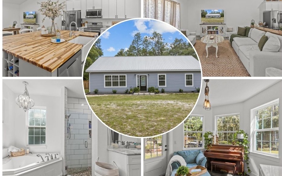 Discover your dream home in Bell, Florida! This Pinterest-perfect, site-built gem features 2 spacious bedrooms and 2 luxurious bathrooms. Situated on over 3 acres, this property is designed for both comfort and entertaining. The outdoor area is truly exceptional, with a two-level yard, pavilion, fire pit, and swing, making it an ideal space for gatherings and relaxation. Inside, the gourmet kitchen boasts high-end appliances, quartz countertops, and a butcher block island, perfect for any home chef. The master suite offers a spa-like bathroom with a separate tub and shower, providing a serene retreat. This home offers the perfect blend of elegance and functionality. Whether you're cooking in the gourmet kitchen or relaxing in the serene outdoor space, every detail is crafted for your enjoyment. Bell is a charming small town in North Florida, known for its friendly community and peaceful rural setting. It offers a slower pace of life while still providing easy access to outdoor activities such as fishing, boating, and hiking. The town is also home to local amenities, making it a great place to call home. Bell combines the best of country living with the convenience of nearby cities. Call today to set up your tour.