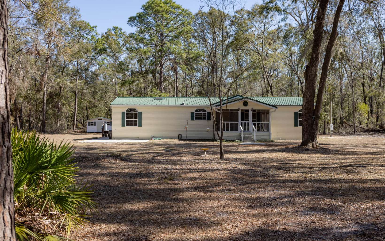 Spacious 3/2 home originally custom ordered on nearly 15 acres in a highly desirable location! Surrounded by trees on a low traffic road and just around the corner from the famous Spirit of the Suwannee Music Park - North of Live Oak. No deed restrictions, HOA, or covenants! The home has a large open kitchen with an island, abundance of cabinet storage. Double pane windows, marble window sills, fireplace, metal roof, upgraded insulation, and more. In addition to that there is a covered screened in front porch, and an expansive wooden back deck. 12x18 Storage building, 10x12 overhang, with electricity ran to it. Extremely pretty home site. The property is mostly all woods except for the area around the home, there are some trails throughout. Mixture of natural growth oaks and older pine trees. Beautiful setting that must be seen in person to appreciate! State management land at end of street, great for horseback riding and recreation. Recently surveyed into two 7.23 acres tracts (14.46 Acres total). Please ask for a copy of survey and aerial views for property layout, schedule your showing today!