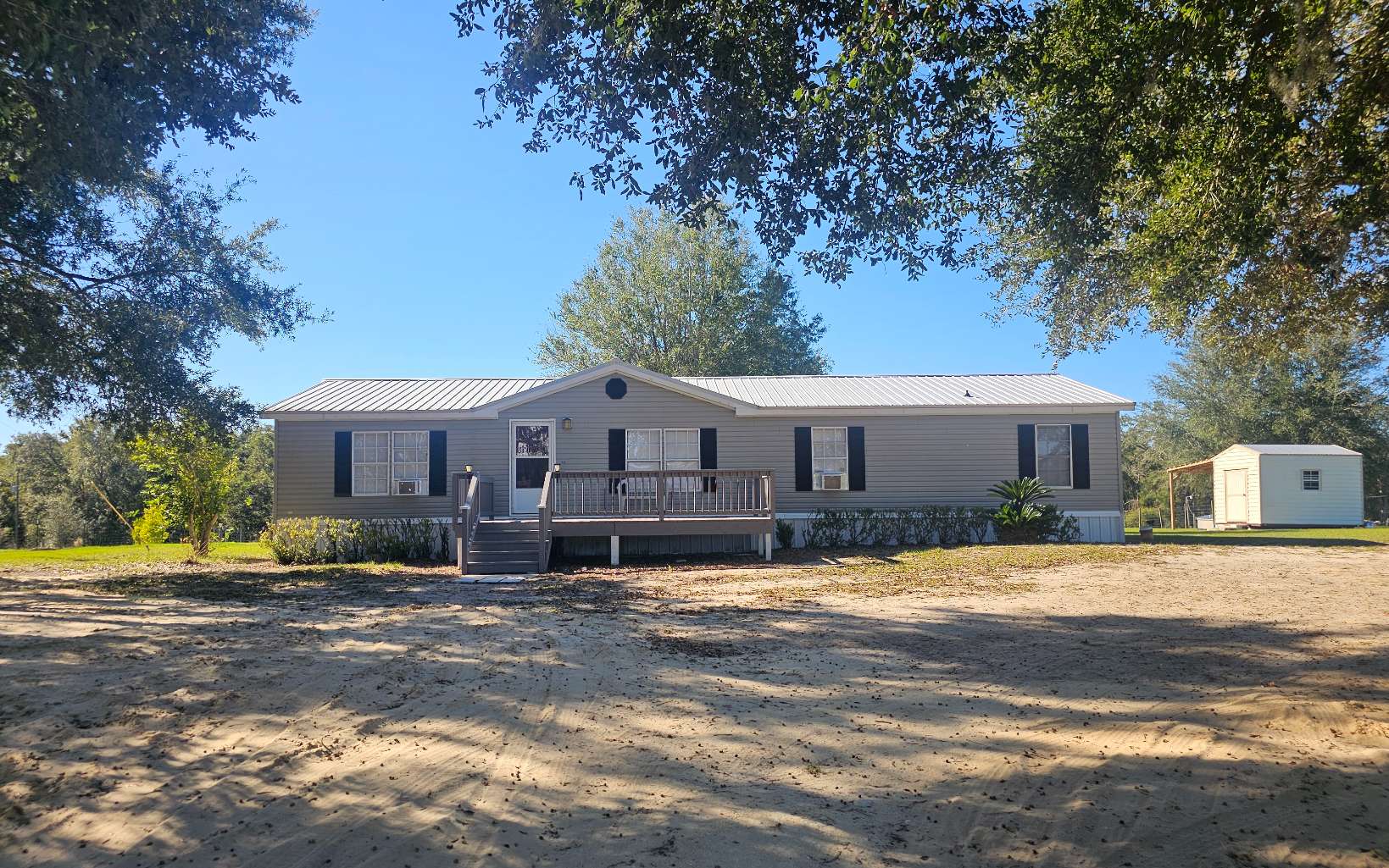3 Bedroom 2 Bath DWMH on nice 5 acres located in rural Gilchrist County, FL. The home is just over 1700 sq.ft., with a living room and den, kitchen island/breakfast bar and a split floor plan. The master suite features a glamour bath with a double sink vanity and makeup counter, garden tub, and walk-in show. Metal roof was installed 6 years ago. New covered back deck. Home sets under nice shade trees, back off the road with a beautiful view of the front pasture. Property is fenced and cross fenced with gates. Bring you horses or other livestock. This area has a lot of wildlife and close to the Suwannee River, Rock Bluff springs, and many more crystal clear fresh water springs. Only an hour from the Gulf of Mexico. Plenty of outdoor sporting activities, fishing and hunting. Great place to raise a family with A rated schools in Gilchrist County. Not in Flood Zone. No HOA or Deed Restrictions.