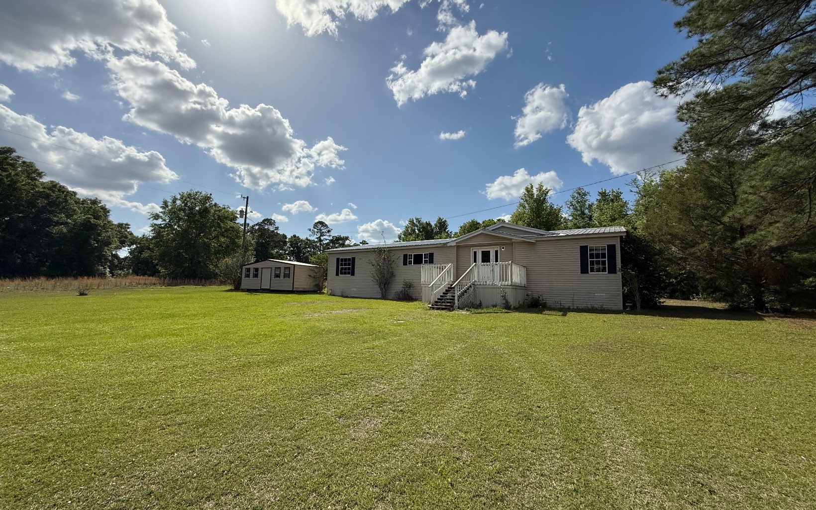 The property boast just shy of 10 acres, 3/2 DMH slightly under 2,000 sq ft with two outdoor metal sheds. The home sits on a hill to welcome the breeze and to enjoy the wildlife. There are turkeys and deer that freely roam the yard. The property provides seclusion and tranquility. Conveniently located minutes to Fort White, High Springs and I-75. The home does need work. Post Hurricane Helene the porch covering came off, and A/C no longer works. There is water damage in the kitchen and master bathroom. The front shed is 12x24, and the back shed is 10x16. The property has lots of potential. You can also build a 2nd dwelling.
