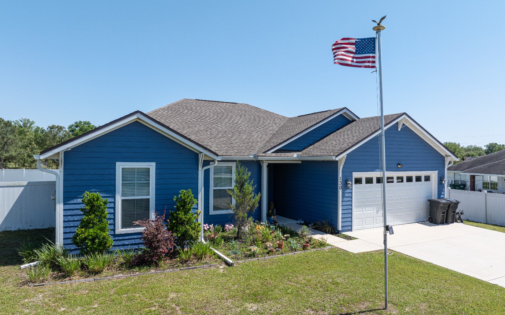 Tucked away at the end of a quiet cul-de-sac, this beautifully appointed 3-bedroom, 2-bath home sits on a spacious half-acre lot with no HOA in a family-friendly neighborhood. Inside, you’ll love the luxury vinyl plank flooring, granite countertops in both the kitchen and bathrooms, and the modern island kitchen featuring stainless steel appliances. The open-concept design and split floor plan offer a great flow, while the attached two-car garage adds extra functionality. Outside, enjoy a fully fenced backyard with durable vinyl panel fencing, an extended concrete patio, and a 12-foot flagpole proudly ready to fly Old Glory. The large air-conditioned prefab shed/workshop is perfect for hobbies, storage, or a home office setup. This home also features gutters and downspouts, a sprinkler system, and a recently pumped septic tank. A portable generator capable of powering the entire home is also included, making it storm-ready and self-sufficient. A Comcast alarm system is already installed for added peace of mind. Washer, dryer, and riding lawnmower are negotiable. Move-in ready and just minutes from town—this one checks all the boxes!