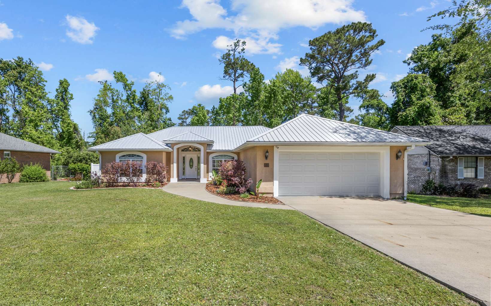 From US 90 and SR 247, East on US 90, Right on Sisters Welcome Road, Left on SW Grandview St, Right onto SW Brookdale Drive, home on the left. Sign in front yard.