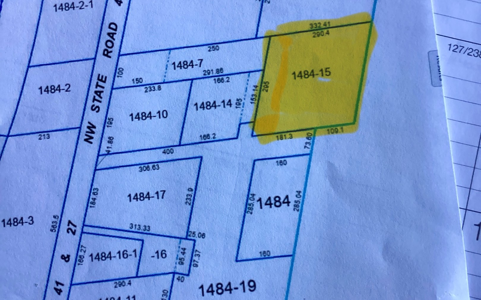 From downtown High Springs take main street south towards Newberry. Just past Dollar General about half a mile on left look for realtor sign and driveway. Go down driveway to the end parcel is on the left