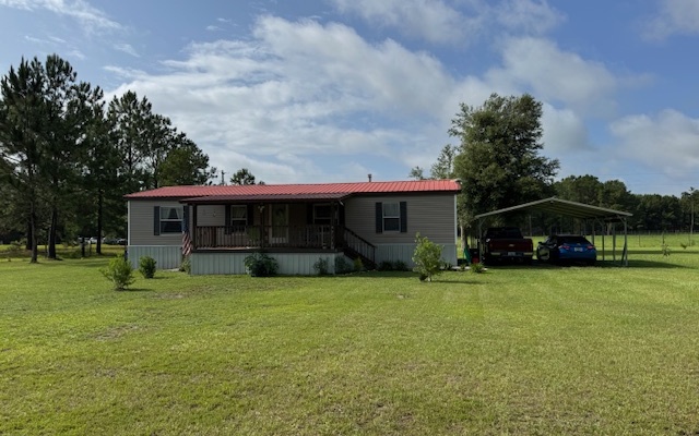 This well-maintained 3 bedroom, 2 bathroom 1998 double wide mobile home sits on a spacious 1-acre lot with no deed restrictions or HOA. Enjoy the beautiful yard and serene setting from the comfort of the covered front and back porches—perfect for morning coffee or relaxing evenings. The home features a durable metal roof, 2024 updated electric water heater, and 2018 newer A/C for peace of mind. A prefabbed 20'x20' metal carport too. Inside, you’ll find a practical layout with plenty of natural light. The property also includes an 8’ x 12’ shed for extra storage and is serviced by well and septic. If you’re looking for your first home, downsizing, or seeking a quiet retreat, this property offers the freedom and space of country living without the rules. Come see it for yourself!