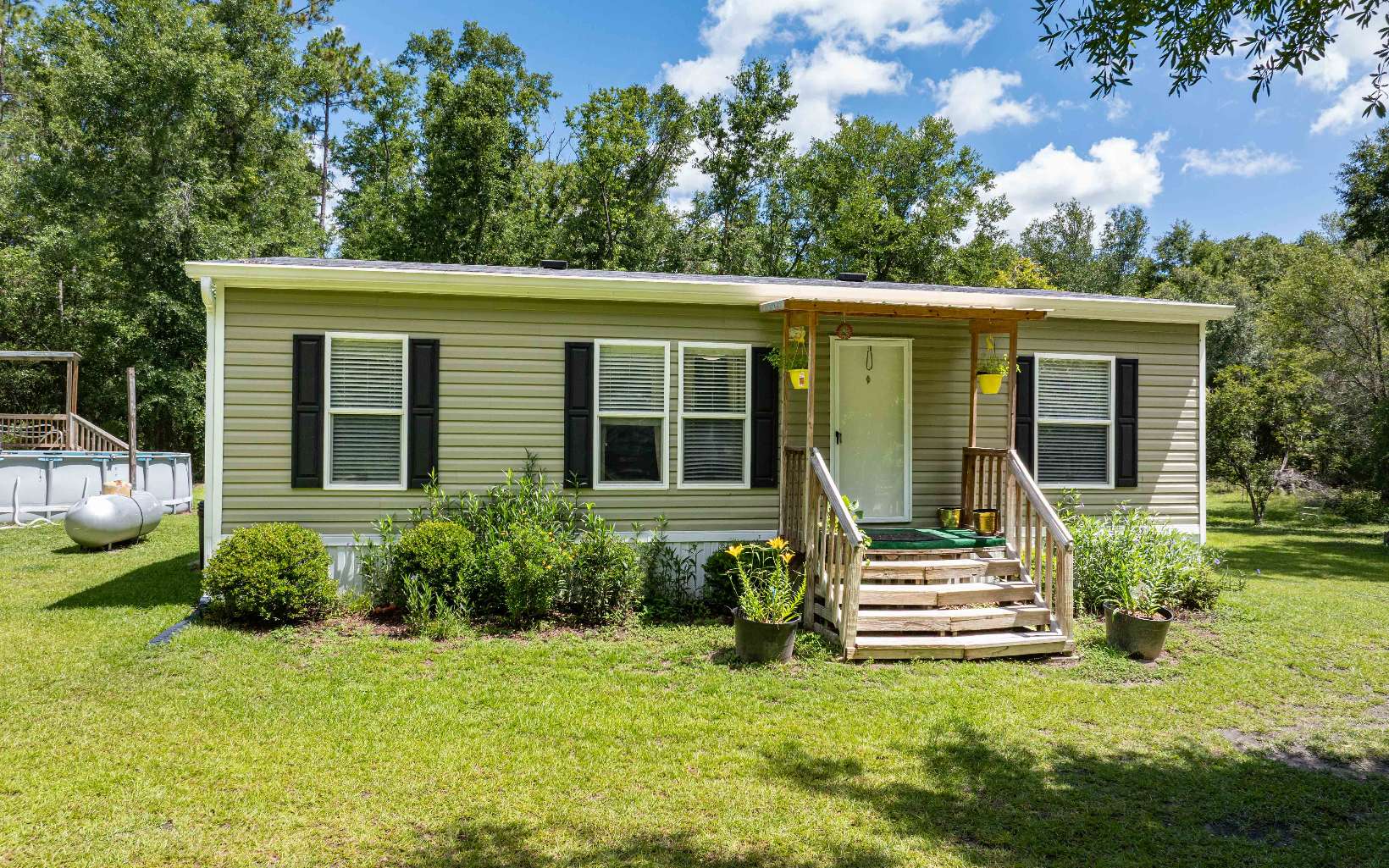 Beautiful country oasis. This property is fully fenced and gated with a 24' x 52" above ground pool, and plenty of storage with a 10x20 shed(2 lofts) and a 24x30 metal garage (loft) with 2 roll up doors and 200-amp power. Water is run to the garden area. There is a full RV hook up. Enjoy the 12x26 covered deck across the back of the home and fruit from your own trees: 2 persimmon, 2 figs, 2 banana, 1 passion fruit, 1 sweet kumquat, 1 cara-cara orange and 1 satsuma orange. Property is not in a flood zone per FEMA. Flood map is in the links and documents.