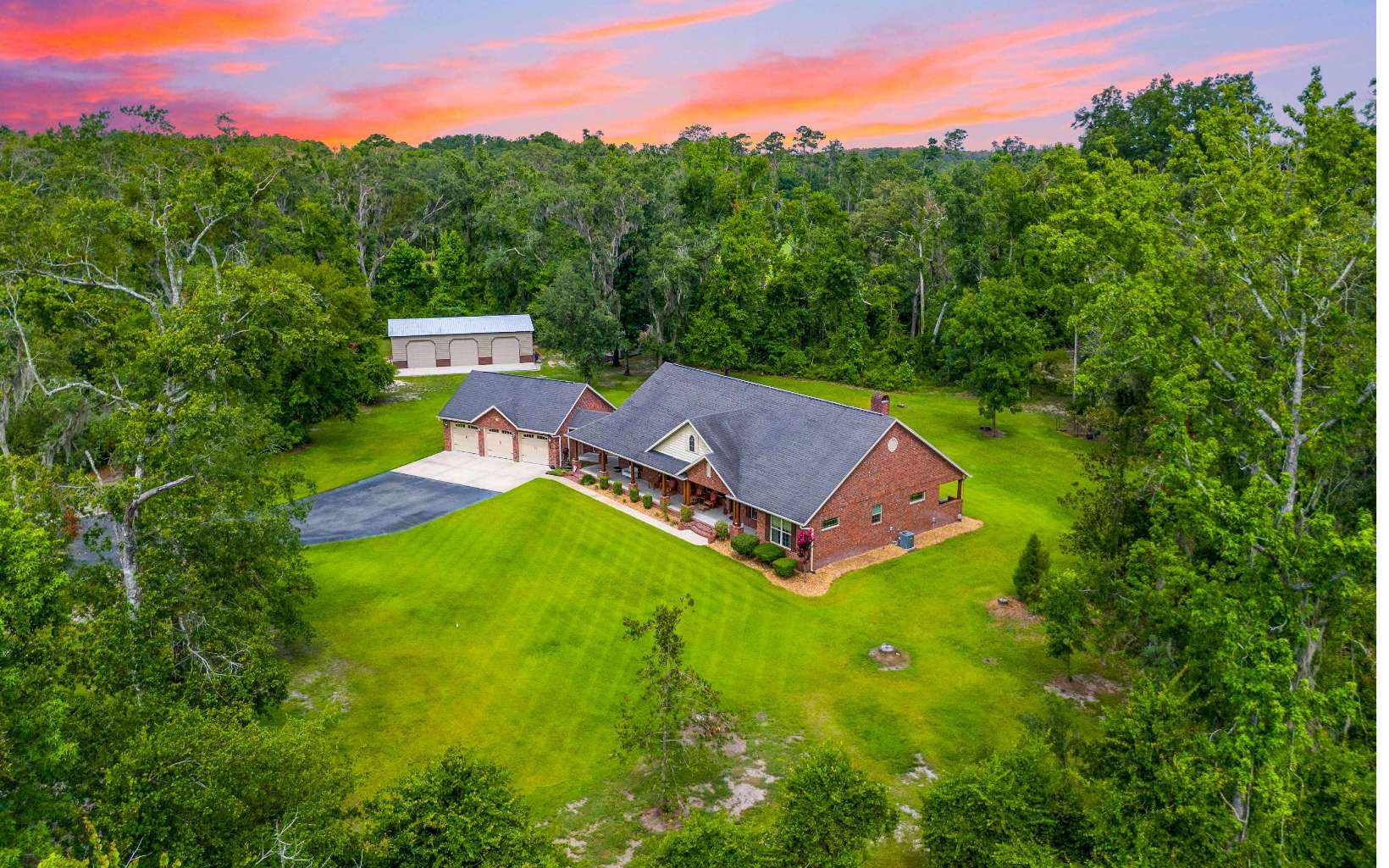 Welcome to your private estate on nearly 40 acres in Live Oak, Florida! This custom brick home features 3 bedrooms, 2.5 baths, 2,316 heated sq ft, plus a 354 sq ft Florida room with AC/heat. The kitchen includes custom cabinetry, double ovens, center island with second sink, pull-out spice racks, and trash compactor. Oversized laundry room offers a dog shower/foot wash station and half bath. This beautiful home includes wood-burning fireplace (plumbed for gas), office, central vacuum, dual AC units (main 3 yrs old), and allergen filter system to reduce dust. There is also a tankless water heater for efficiency. The owner’s suite has walk-in closet, soaking tub, double vanities, and a large walk-through shower with three shower heads. Outside, you'll find a 3-car garage for oversized vehicles, and a 30 x 50 metal workshop with AC/heat, 4 bay doors, and 10,000 lb car lift. A 12x24 shed with power and a private shooting range are also on the property. Only 15 mins to Live Oak, 18 to Lake City, 48 to Valdosta GA, 65 to Gainesville, 69 to Jacksonville, 3 mins to I-10, and 4 mins to I-75, this home is in an excellent location to have you close enough to amenities but far enough away for peaceful living. Call today to schedule a private tour!