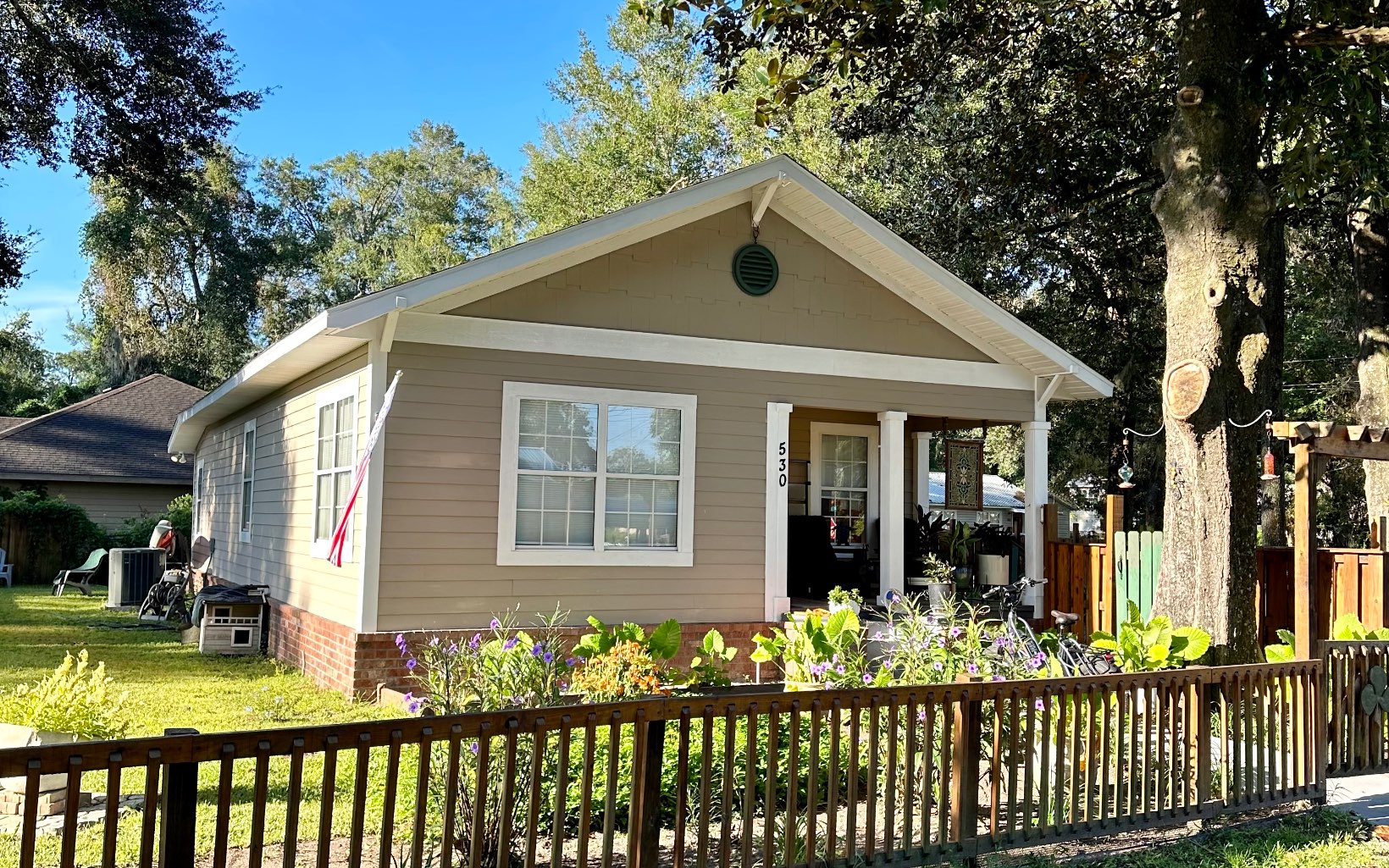 Back on, cleared out, and ready to go! Charming bungalow-style home on a desirable corner lot! This beautifully maintained 2-bedroom, 2-bath residence features soaring ceilings, an open-concept great room, and durable vinyl plank flooring throughout. The updated kitchen offers sleek stainless steel appliances and newer cabinetry, perfect for modern living. Enjoy a private, fully fenced yard ideal for outdoor entertaining or peaceful relaxation. Washer and dryer are included for added convenience. Located in the heart of town with easy access to shops, dining, and more. Truly a must-see!