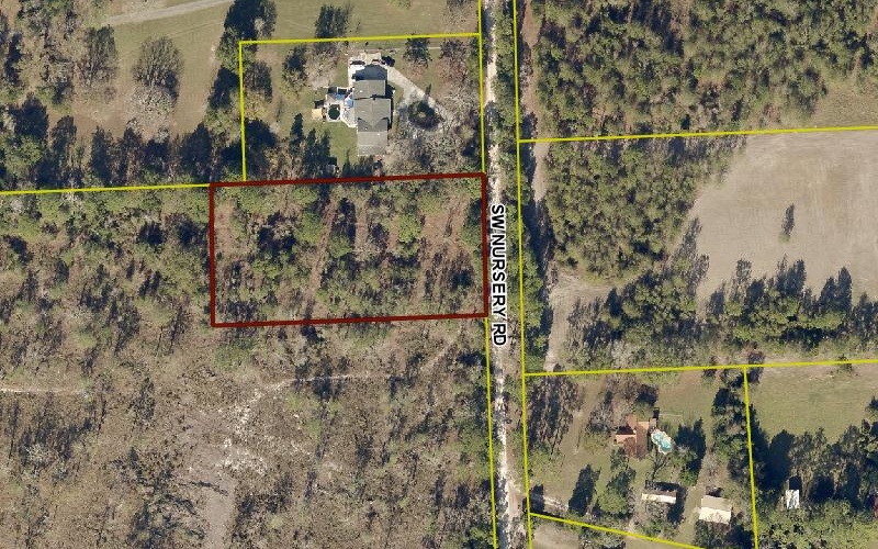 From SR 247 (Branford hwy) turn onto Nursery. Go 6/10 of a mile and the land will begin right passed the gray 2 story home. The home has a 6 foot chain link fence. You should see survey markers.