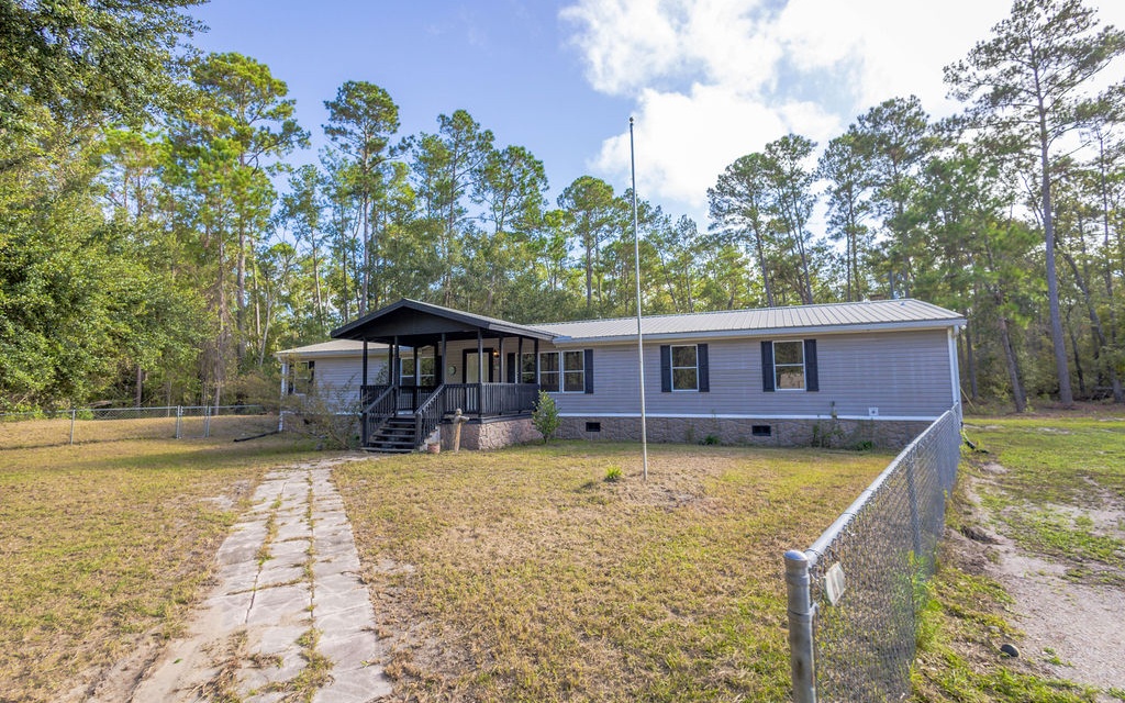 Escape to your new homestead in peaceful northern Suwannee County. Tucked away on over 22 wooded acres, this property offers the perfect blend of privacy, comfort, and opportunity. Step inside the spacious, freshly updated double-wide mobile home and enjoy the thoughtful touches throughout. A 2018 metal roof provides peace of mind (and the perfect rhythm for rainy-day lullabies), while the 2022 air unit keeps you cool during those hot North Florida summers. A large covered front porch welcomes you home, leading into an inviting split floor plan with generous living spaces and natural light. Out back, relax on the screened porch and take in the quiet of easy country evenings. The land itself is a nature lover’s dream — just over 22 acres of mostly hardwoods, already divided into two connected parcels for those considering a family compound or future build. Two outbuildings convey with the property: a 12’ x 16’ backyard workshop and a 25' x 30' metal building complete with spray-foam insulation and its own mini-split air system. A well-built pump house shelters the new well tank and Rheem water softener system. Nearby, a newly poured 16’ x 24’ concrete pad offers endless possibilities — the previous owner planned to use it for a greenhouse. This property truly has it all: comfort, acreage, and endless potential. Schedule a visit and see for yourself everything this northern Suwannee County property has to offer.