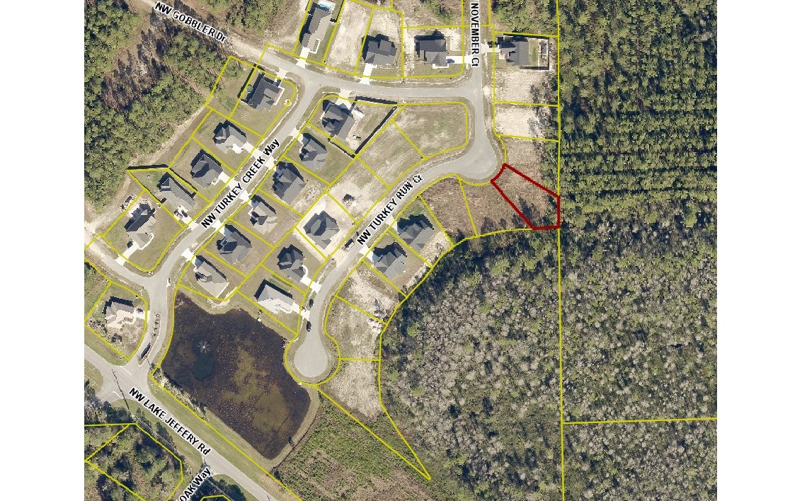 From US-90/I-75 in Lake City go East on US-90, left on NW Bascom Norris Dr, left on NW Lake Jeffery Rd, right into Woodborough North S/D to end of NW Turkey Creek Way, Right on NW Gobbler Dr to end, Right on NW Turkey Run Ct to lot on left.