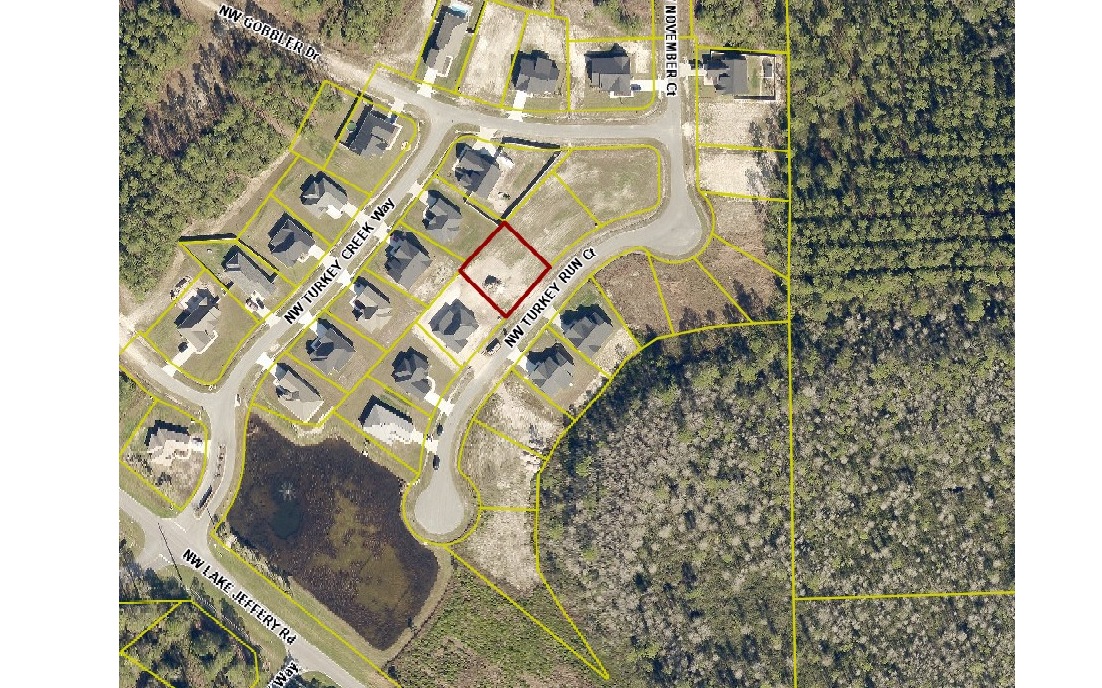 From US-90/I-75 in Lake City go East on US-90, left on NW Bascom Norris Dr, left on NW Lake Jeffery Rd, right into Woodborough North S/D to end of NW Turkey Creek Way, Right on NW Gobbler Dr to end, Right on NW Turkey Run Ct to lot on left.