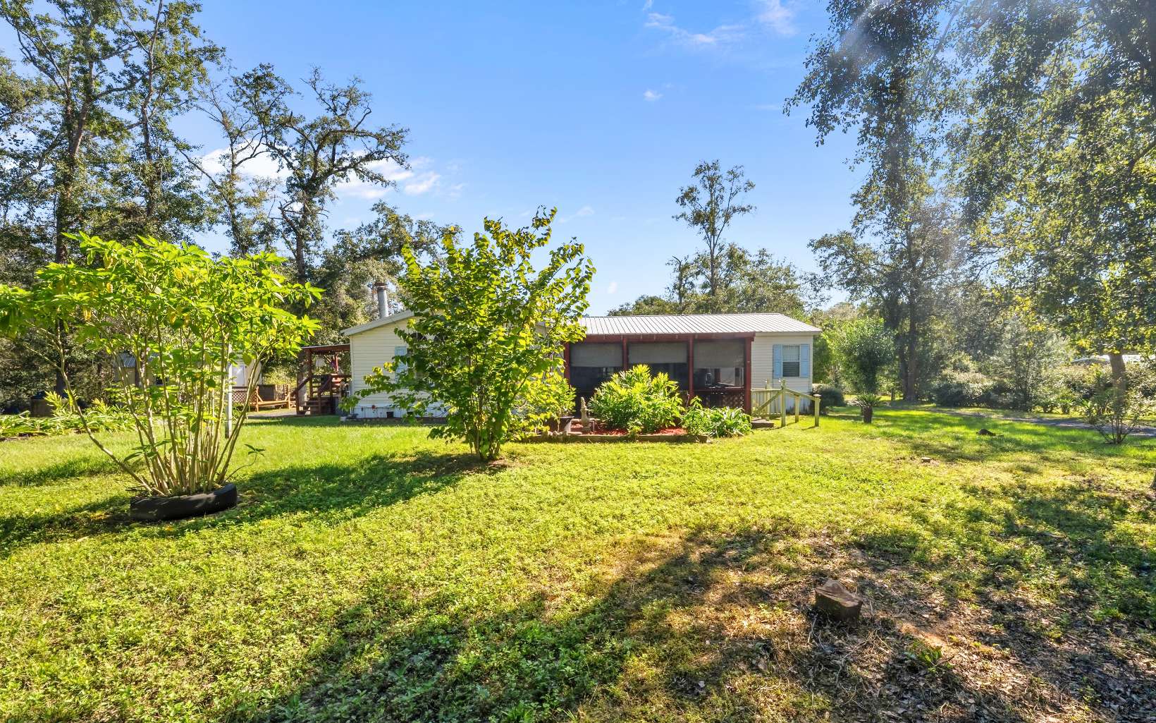 Nature lovers, Water lovers, Workshop lovers, Need a She Shed? THIS IS THE ONE! Set on 7.92 high and dry acres with direct access to the St. Marys River, this peaceful Glen St. Mary retreat lets you watch owls, turkey, and deer from your porch, then launch a kayak or canoe from your own backyard, or simply cast a line and fish at sunset. The well maintained 1,950 square foot triple wide offers easy indoor to outdoor living with a deep front porch, a covered outdoor area, and a huge fully screened back porch. Inside, the split floor plan features three bedrooms and two bathrooms. The primary suite spans one side of the home with a large walk through closet. A comfortable living room, an extra den with a fireplace, and a separate dining room create plenty of space for everyday living and large family gatherings. The property is thoughtfully fenced with the homestead up front and four additional structures to keep life organized. A 24 x 36 car and workshop has electricity, a wood burning stove, and built in shelves and benches. A 16 x 12 she or he shed has water and power, a window unit air conditioner, and a sink. A 14 x 24 pole barn includes built in tool boxes, shelves, and benches. Another storage building houses the water softener with extra room to spare. Enjoy privacy and color from well planned landscaping, fruit trees, and a variety of beautiful plants, with open space reserved for a garden and a built in sprinkler system to keep it all thriving. Preferred lender offers