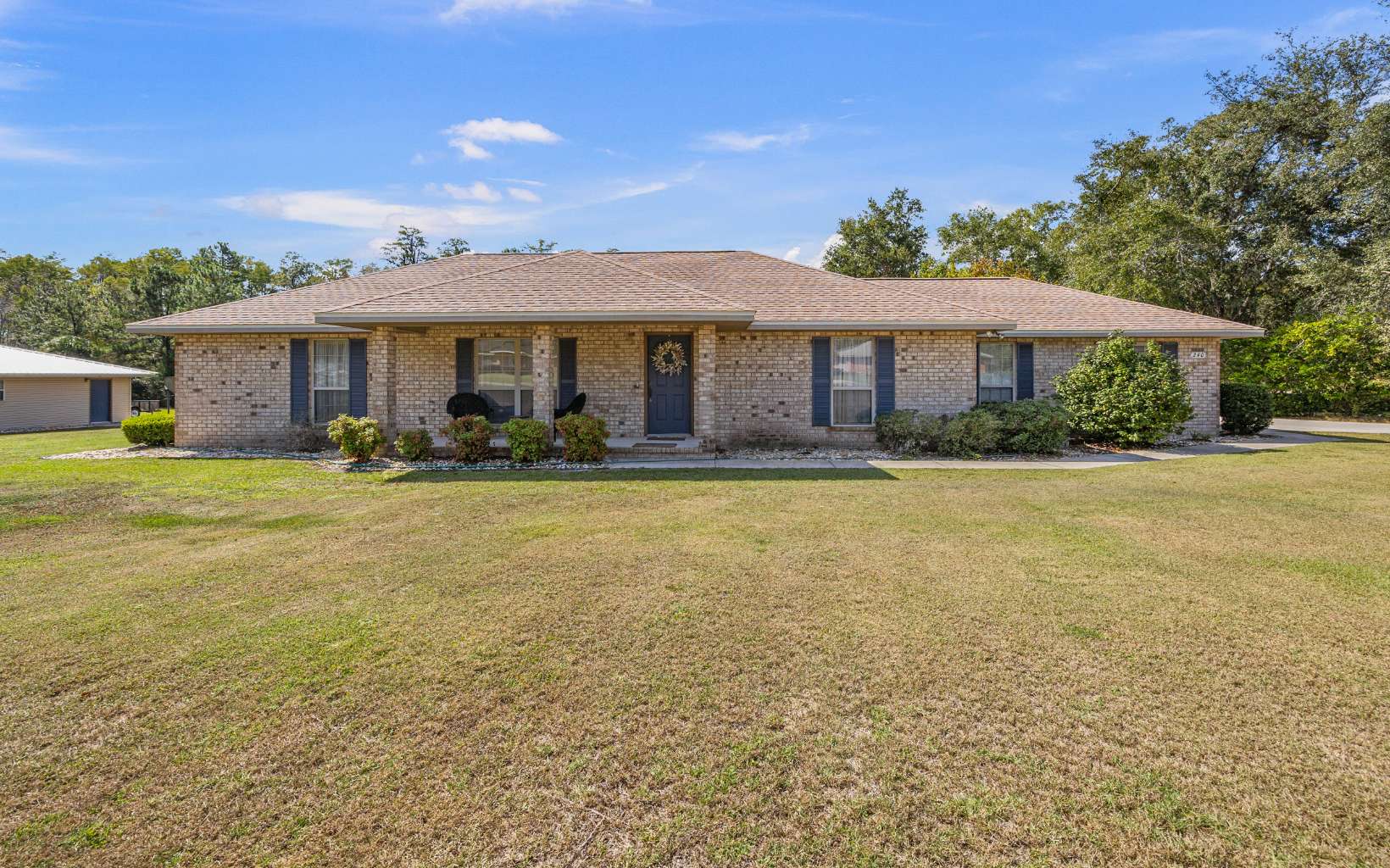 Beautifully updated and move-in ready, this 3-bedroom, 2-bath home is located in the desirable Huntington at Woodcrest neighborhood. Perfectly positioned on an oversized 1.61-acre lot, this property offers both space and privacy. The home features a split floor plan with an open concept layout, ideal for modern living. The upgraded engineered hardwood flooring flows seamlessly throughout the main living areas, adding warmth and style. The kitchen is a true highlight with stainless steel appliances, a gas stove, granite countertops, and an inviting eat-in bar that opens to the dining area. Both bathrooms have been tastefully updated, offering a fresh and modern feel. Enjoy year-round relaxation in the bright Florida Room, complete with French doors that lead to a covered back porch — the perfect spot for outdoor entertaining. Additional features include a 24’x28’ workshop and a covered metal carport, providing ample space for hobbies, storage, or extra parking. A rare find that combines comfort, quality, and a spacious setting. Architectural Shingled Roof 2021.