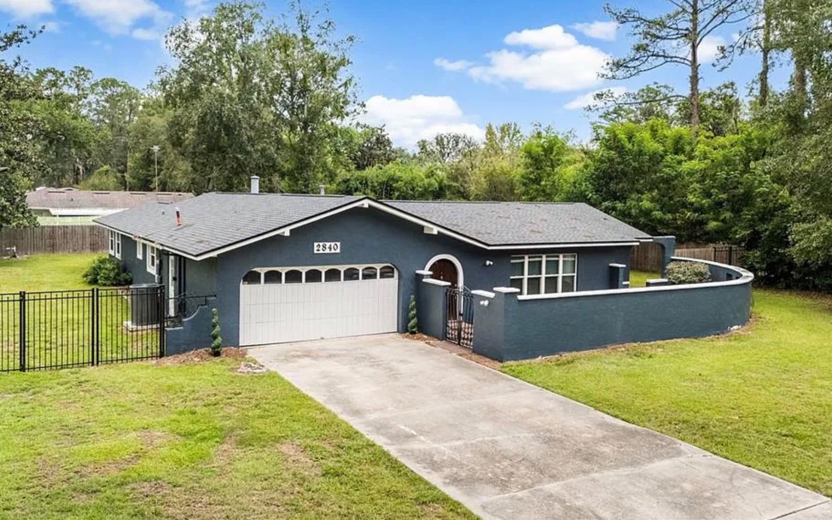 Forget those cookie cutter homes with no outdoor space. Come home to your very own castle. Check out this Concrete Block home with a beautiful enclosed pool in NW Gainesville. Enjoy the majestic oaks as you turn into the neighborhood. Drive into your extra long driveway to your 2 car garage and peek around the corner to find your own private courtyard. Imagine what you can do with this space! Enter the rounded, castle-like door into a giant living room with tall ceilings, the first of two large living areas. Past the living room, you'll find a breakfast nook and a completely remodeled kitchen. Enjoy new cabinets, new granite countertops, and tons of cabinet space with slow close drawers. Even a comfortable pantry for those fancy feasts! On this side of the house you’ll also find the master suite with updated tile shower and vanity and walk in closet. On the other side of the house, check out your formal dining room space, the wood fireplace in the family room (with a designated bar area), two more bedrooms, and a full bathroom. That third bedroom also has private access to the pool. In fact you can see the pool from most of the house. Four sets of french doors and large windows throughout the house has tons of natural light without any neighbors peeking in. Outside you will find a covered patio with plenty of room for your outdoor furniture, and a screened in pool that has been resurfaced.