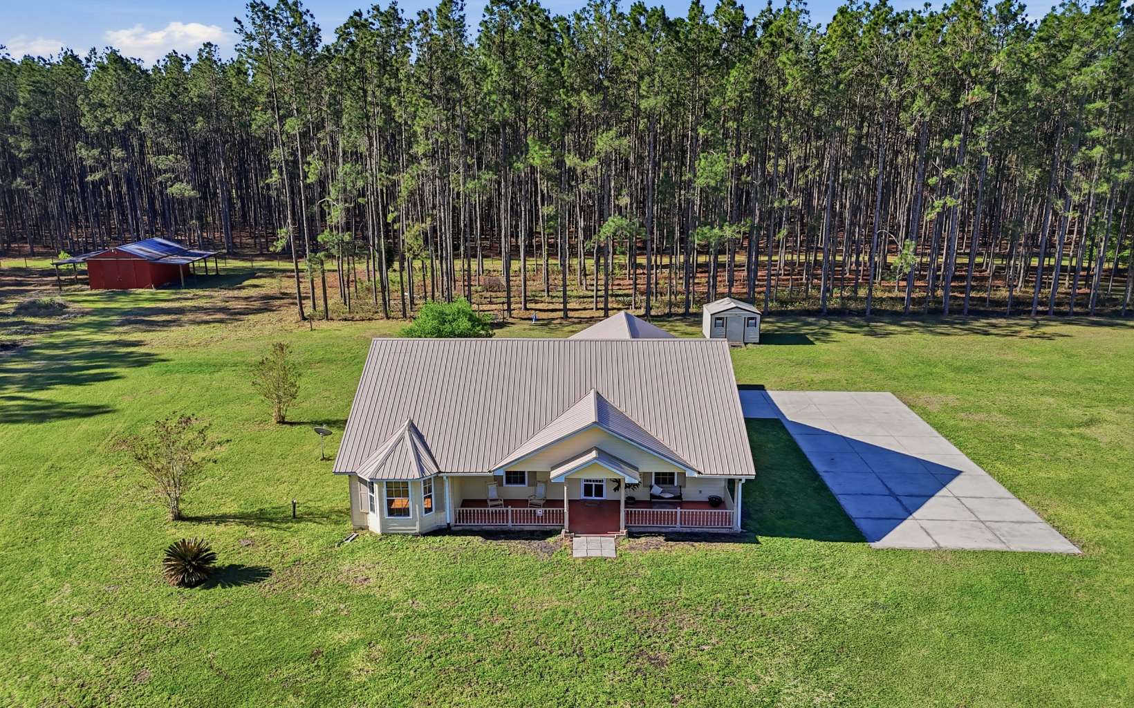 Absolute gem on 10 acres in the highly sought-after south end of Columbia County! This beautiful property brings together comfort, space, and versatility, all set against a peaceful rural backdrop. With no deed restrictions and A-3 zoning, you’ll enjoy the freedom and flexibility to truly make this property your own.. Step inside to an inviting open-concept floor plan where a striking stone fireplace anchors the heart of the home, creating a warm and welcoming atmosphere. The spacious kitchen features a central island that flows seamlessly into the dining area and great room—ideal for entertaining or everyday living. The owner’s suite is a true retreat, offering generous space, double vanities, and a walk-in shower. Two additional bedrooms share a well-appointed hall bath, while a versatile flex room provides endless possibilities—perfect for a home office, playroom, or hobby space. Convenience meets practicality with a dedicated utility room located just off the entrance from the attached two-car garage. Enjoy peaceful mornings on the charming front porch or unwind in the evenings on the screened-in back porch overlooking your expansive acreage. Outside, you’ll find a large 20' x 30' barn/workshop complete with lean-tos on both sides—ideal for storage, equipment, or projects. If you’re looking for privacy, space, with room to grow, this property truly has it all!